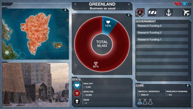 Once the player reaches the main map, they are allowed to select a starting country, and the disease starts to spread there. The gameplay always starts slowly, usually taking a few days to get going, though the game allows three speeds for progression, I found myself choosing the fastest speed and pausing when I wanted to do something, as there’s a lot of downtime in between events that require action.