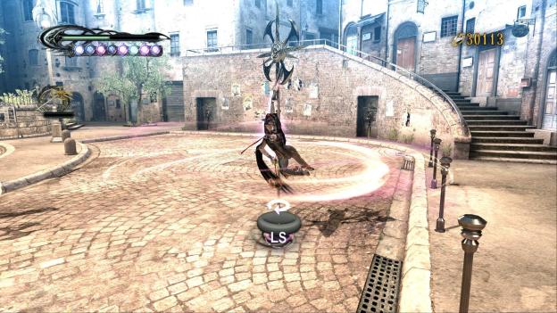 Then there’s the gameplay. Bayonetta takes its combat system from stylish fighters like Devil May Cry series. The player can attack with punches or kicks, can jump and then dodge. The dodges are a key to the series. On a near miss on a dodge, Bayonetta will activate Witch Time, which slows down the world and allows Bayonetta to deliver very powerful attacks. Witch Time is key to Bayonetta. Dodging though is overpowered even without activating Witch Time. Bayonetta gets near invincibility during dodging, as such dodging is powerful enough to stop most attacks.