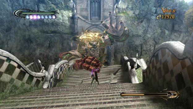 That’s the style of Bayonetta, it is all over the top, insane, and just mind-blowing. The story is told in a very odd and unique way. But this is the one area I have a problem with the game. I’ve read the synopsis of the story, and everything that’s said is probably in the game, but a lot of it is delivered in the final chapter of the game. The story through the game is interesting and it develops a lot of the pieces of it well, but it’s like a puzzle that’s in six pieces. They all look like they belong together but you can’t fit it together.