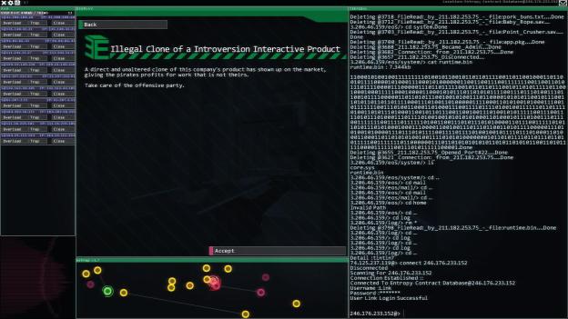 The big thing though is most of this game is played in that console. You run commands, delete files, and can even ignore the GUI for the most part and just hack using just the console. In fact, you even have the ability to remove the GUI from the game. The only issue I have with it is that there are a few functions of the game that includes accepting jobs that require the GUI. It’s a shame because I like the idea of never using a GUI for the game for the “Elite player”. Even better it could give you more memory to use, or give the player more power that they might require.