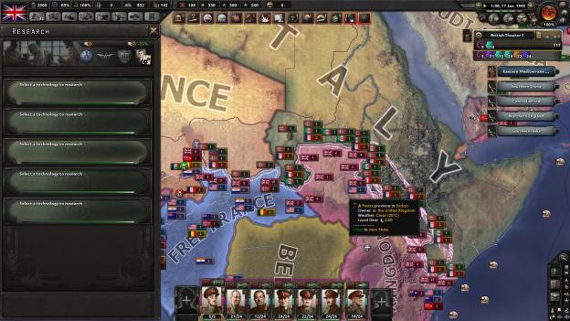 You see I didn’t pay attention to the owned countries that belonged to the UK and the game didn’t let me, I didn’t even know there was a battle going on in Africa for my country. As such I neglected my royal duty, and let Italy take a great deal of Africa. Fans online seem to say that the UK should move their early troops to Africa to kick Italy out. A good suggestion, just one that came too late after about 5 hours had been invested. I was playing on “Ironman” so I didn’t have incremental saves. So I went to work to push Italy out of Africa and had a lot of problems with that plan due to the fact that it came too late.