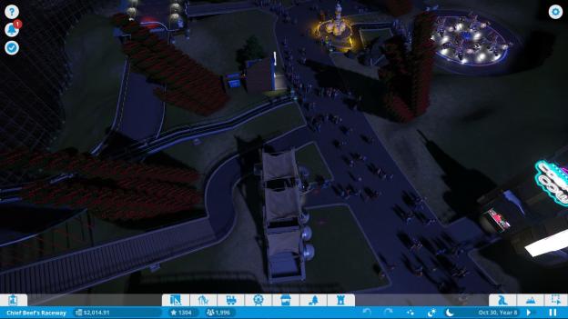 There are a few other annoyances here. The UI is good if you know where to look for something, but quite often the challenges or career goals ask for something that’s not always clearly available. I had to keep the robbery rate under 10 or 30 percent for a challenge once. I don’t know if that number was displayed anywhere but I couldn’t find it. Often times the issues with finance too aren’t well displayed. There’s usually a reason your park is in the red, and it’s not clear. Knowing that X ride is not making back its profit could allow you to focus on what’s wrong with that ride, but that information isn’t always available or clear