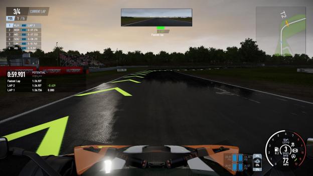 The driving line is quite helpful in a number of situations. And that wet track…