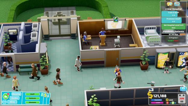 Two Point Hospital does require a decent amount of micromanagement of the staff, but the game alerts you to when most of it is necessary. It’s mostly hiring new staff, promoting them when it’s time, and training them so they can be promoted.