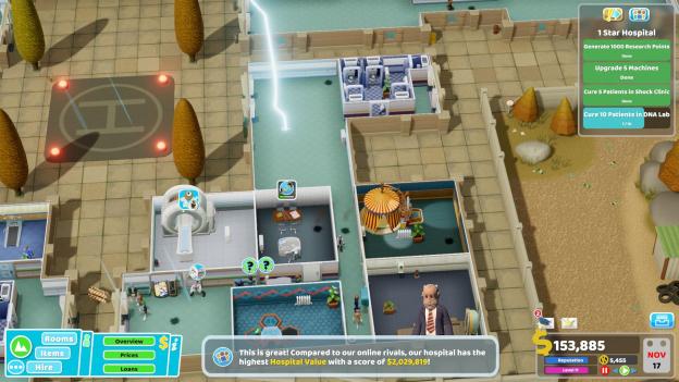 Two Point Hospital also has a wealth of tooltips informing you of more information about almost everything in the game. Every mission and goal in the game will give you hints on how to achieve it. But it goes beyond the simple goals of the game. Everything in the game gives you an explanation of what it is, or what it’s doing so almost nothing is confusing. The UI might be the best part of the game, which is high praise because a lot of Two Point Hospital are well designed, developed and polished, it’s just that the UI is so well thought out that I have to give it a high amount of credit.
