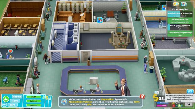 In fact, there are a few exploitable pieces of the game where you can send people home to avoid negatives, but similarly, that’s not in the spirit of the game. You can “Min/max” a number of pieces of the game as well. If you really want to optimize the hospitals, you can grab staff, and patients and shuffle them to where they are walking and more. Similarly, while the prestige of each room is valuable, to maximize the prestige it’s easier to throw posters on every inch of a wall, and then drop a number of trash bins instead of creating beautiful rooms, the player will ultimately create a very ugly room for some statistical benefit.