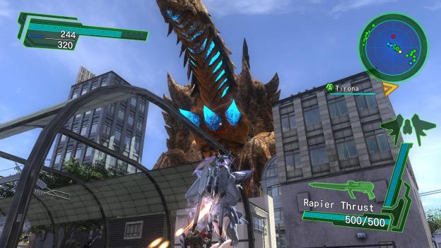 EDF as a series has destruction as a major piece. When buildings take enough damage they will play a canned destruction animation showing them falling. This sounds like a gimmick and many games use it as such, but this actually has a use in the gameplay, as insects will sometimes climb buildings, and buildings block some views that can be used tactically. However, seeing an entire city area decimated after one of the game’s massive battles is a major moment. It makes the victory feel a touch hollow, as you look at the destruction but the experience benefits from this.