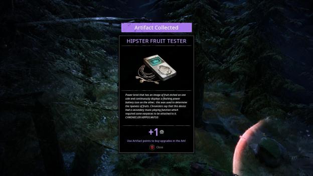 There are, however, artifacts and notes that the player can find. The artifacts just have simple jokes like the “Boom Box” but the notes will fill in more of the world’s backstory or give hints to caches and those work well to enhance the story an extra notch.