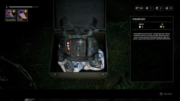 There are a number of chests with equipment. There are also a number of sources of scrap and weapon parts left around the environment and those can be used as resources that the player can trade with the Ark to improve their weapons and buy new items.