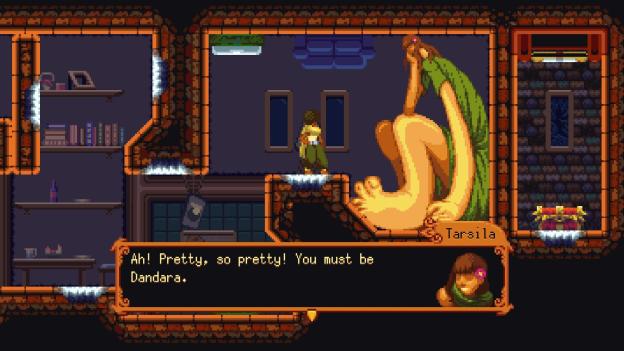 The first thing to know is that Dandara is very beautiful. The credits only list a single artist which I find incredible as Dandara is really impressive the entire time. Every scene, every room, and every character looks well detailed.