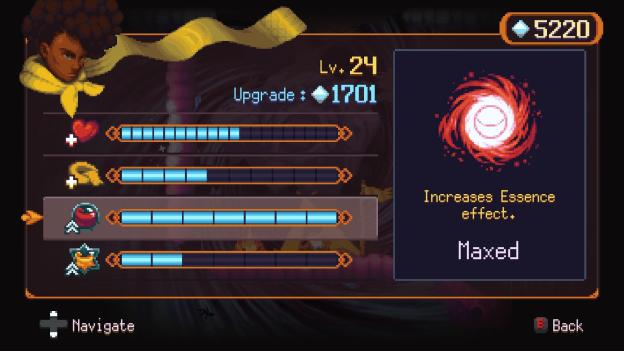 Another Dark Soul comparison has to be made with the Essences of Salt that work similarly to Estus Flasks. Players are able to use an Essence of Salt and it takes a moment to activate but cures damage taken, and will fully get replenished at camps. The camps are also where Dandara can upgrade her powers.