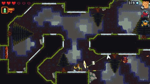 This movement is very strange, but it’s a perfect example of how Dandara approaches most of its gameplay. The basic attack Dandara uses is similarly odd as the player has to hold the attack button to charge it up and unleash it at the targets.