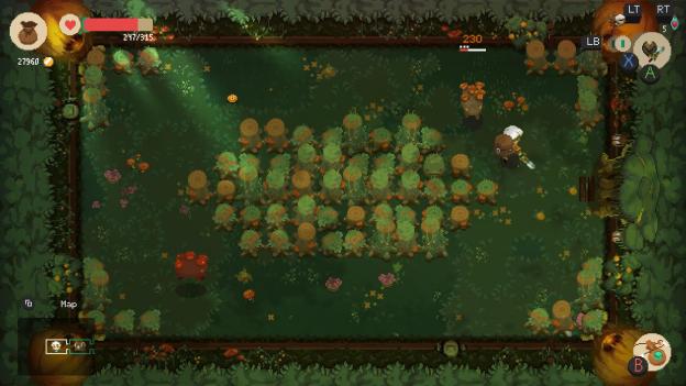 The dungeons operate in a rogue-lite manner, they change every time Will enters it, but there is a good layout and some simple rules. A healing spring will always be found on the way to the boss or the next level. There’s always a “Campground” where a previous adventurer left a note. The bosses and the types of enemies that appear are always the same.