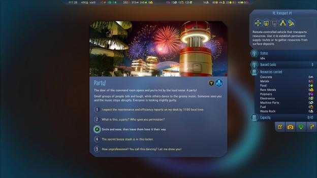 While there is not a strong story in Surviving Mars, there are a few bits of story in some places. Each “Sponsor” has a couple of unique goals for the player and those can be accomplished for rewards but it’s not a full story.