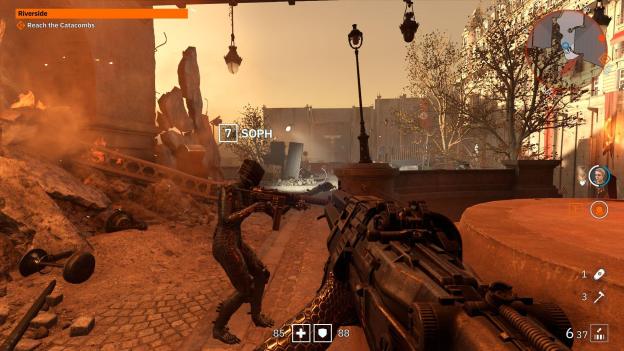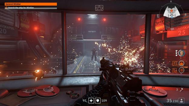 story when having a weaker part. You have a gun, you have bullets, use them to kill Nazis, that’s all the story this game needs, and by not requiring very long cutscenes it makes it work better. This game is based on the adrenaline of the fight, rather than a poor narrative around who these enemies are.