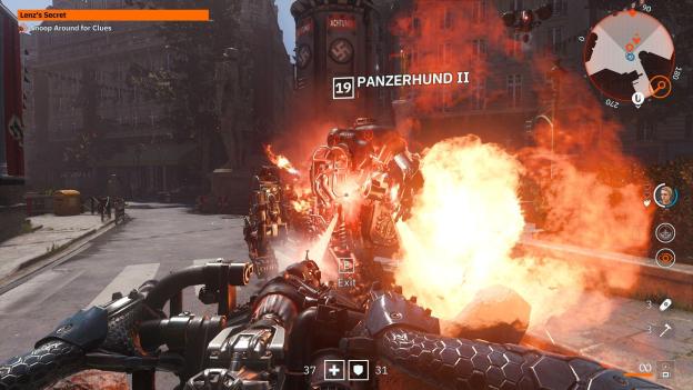 Most of the enemies are the generic Nazi’s we’ve seen hundreds of times already, but there are a few new choices here. There’s more variety in the enemies which is important. The PanzerHund, which is the large fire breathing dog looks impressive, especially when you’re trying to shoot into its body to ignite its flame-throwing apparatus. Overall, it’s just that many characters feel similar. Not the same, thankfully, and there are multiple large robots to marvel at but after seeing two or three, you start realizing there are very similar designs to all of them.