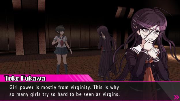 The thing is if this was done as any other character in another Danganronpa game it would be a dark personal tragedy that could enhance the story, here it’s played for humor. There’s even a battle where the character is stripped by numerous attacks and at the end when you can see her underwear and the character throws out the line “I’m 18” or something along that line as if that absolves the creators for doing this. It doesn’t because the abuse was done years before, and even if that character was 18 the other characters involved in this storyline don’t appear to be.